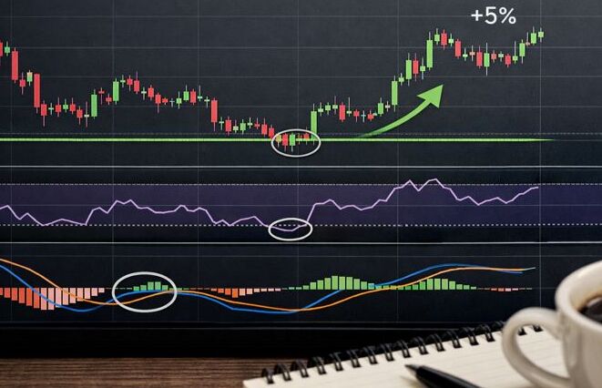 Технический анализ эффективен только при дисциплине и системном подходе. Пример: вход по сигналу MACD с подтверждением RSI и уровней поддержки/сопротивления.